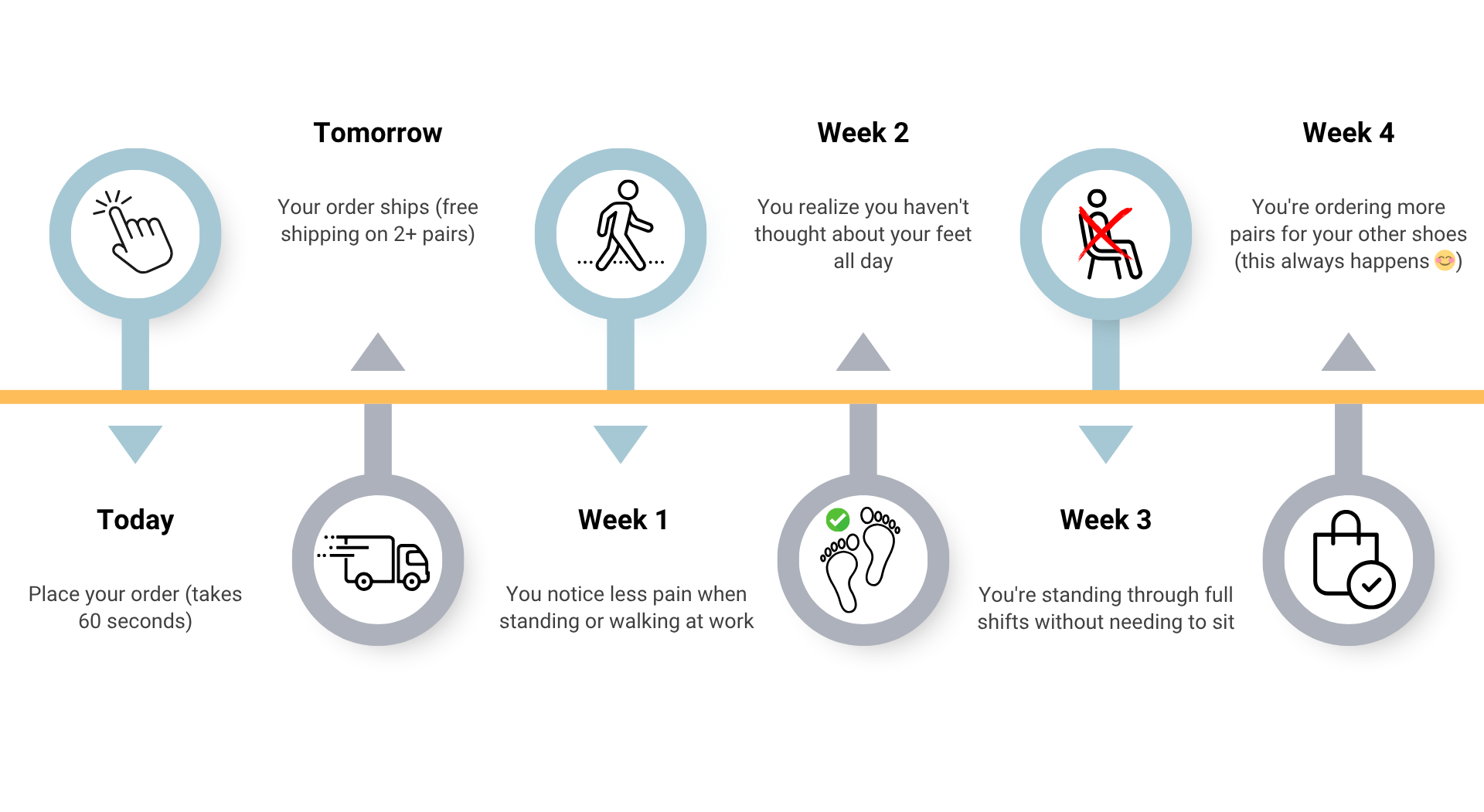 They can offer this because they know what happens when people try Pillow Sole for the first time: They order more pairs for their other shoes within weeks.